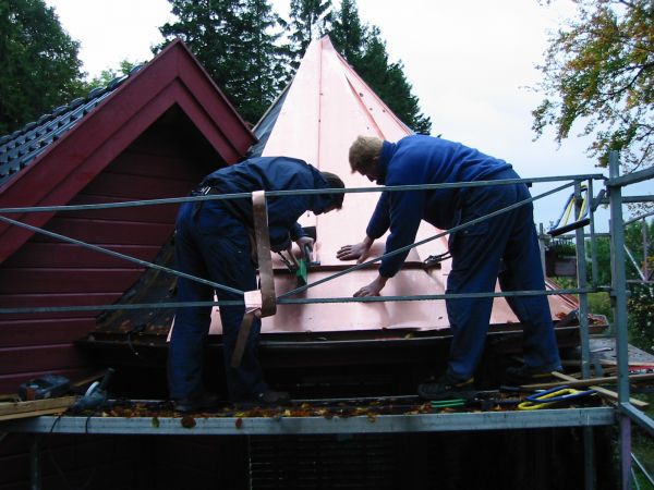 Kobbertekkingen fant sted i 2002 da dette litt spesielle bygget ble satt opp i Fjellveien, Bergen. Fana Blikk la glassert takstein og monterte kobber takrenner og nedløp. Selve paviljongen ble tekket med kobber i god gammel stil.