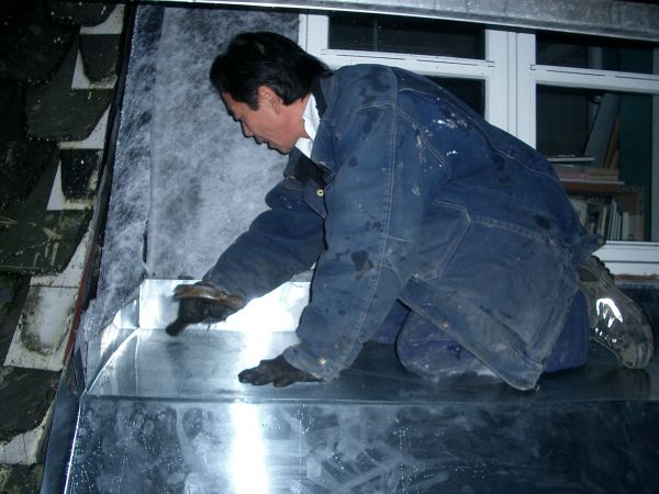 Den gamle sinken ble fjernet, ny underlagspapp og ny sink ble montert på den tradisjonelle måten.