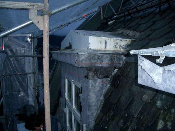 Nytekket tak med dråpeskifer, nye snøfangere og hevet Velux takvindu…